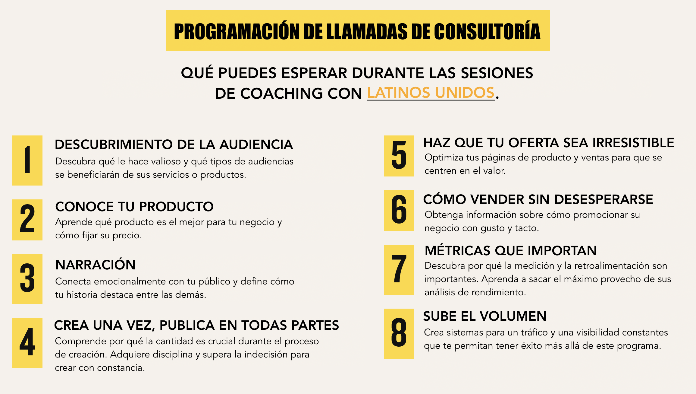 Programa de consultoría empresarial de ocho (8) semanas (con descuento).